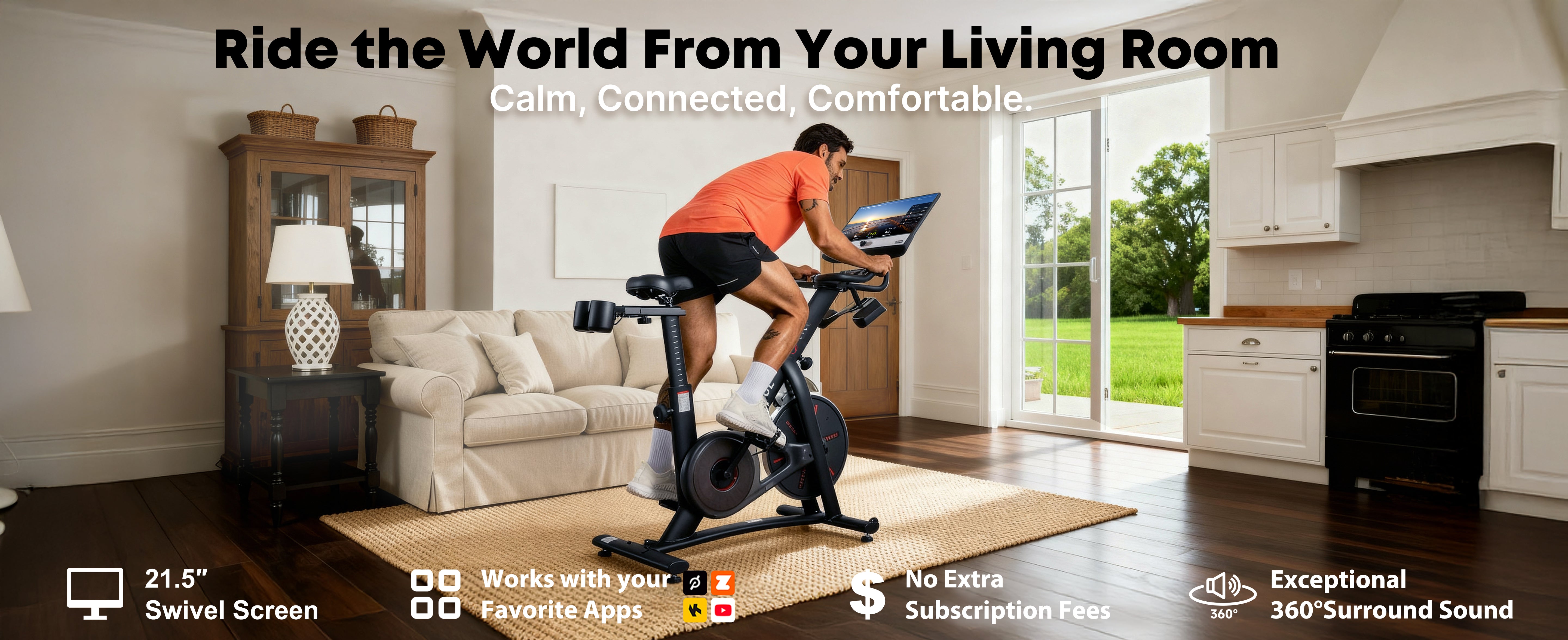 Stay informed with real-time exercise data on the 21.5" FHD screen. Monitor metrics such as distance, time, calories, and cadence, and explore scenic experiences through the YESOUL app.