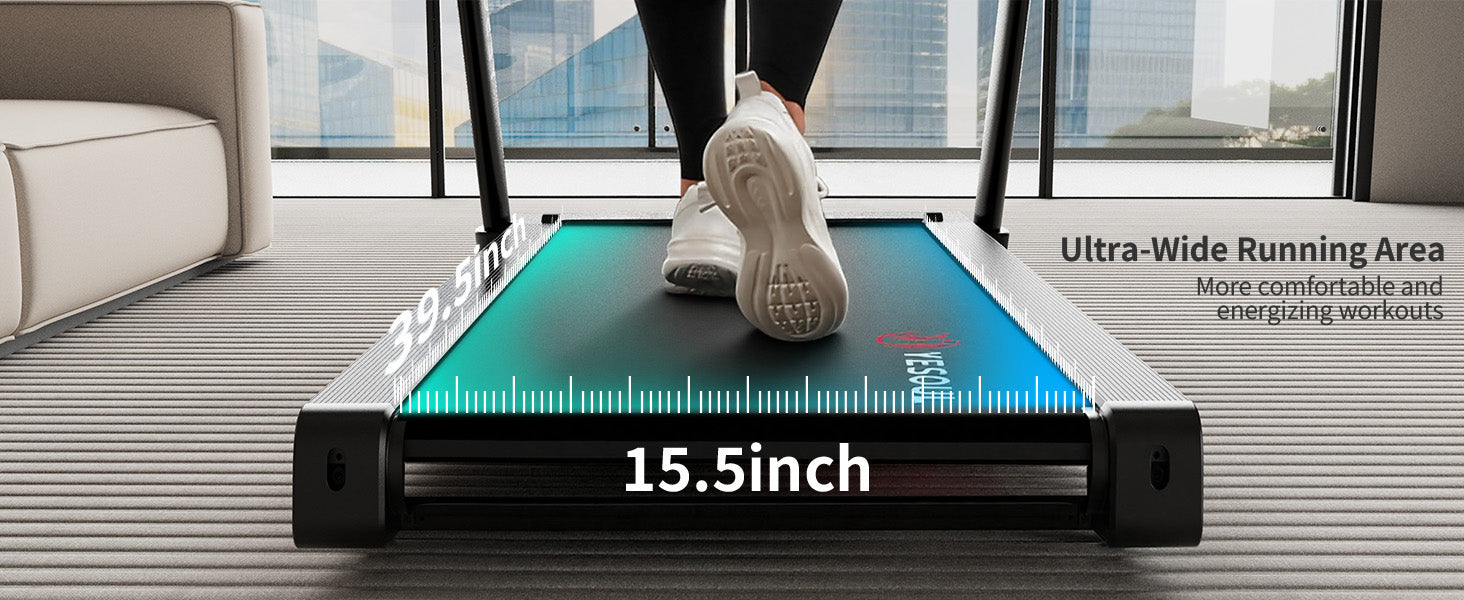 - 【Spacious Deck for Freedom & Family Use】 The 18-inch wide running deck gives you plenty of room to move naturally. Whether it’s a brisk walk or a full run, the deck accommodates different heights and strides, making fitness enjoyable for the whole family