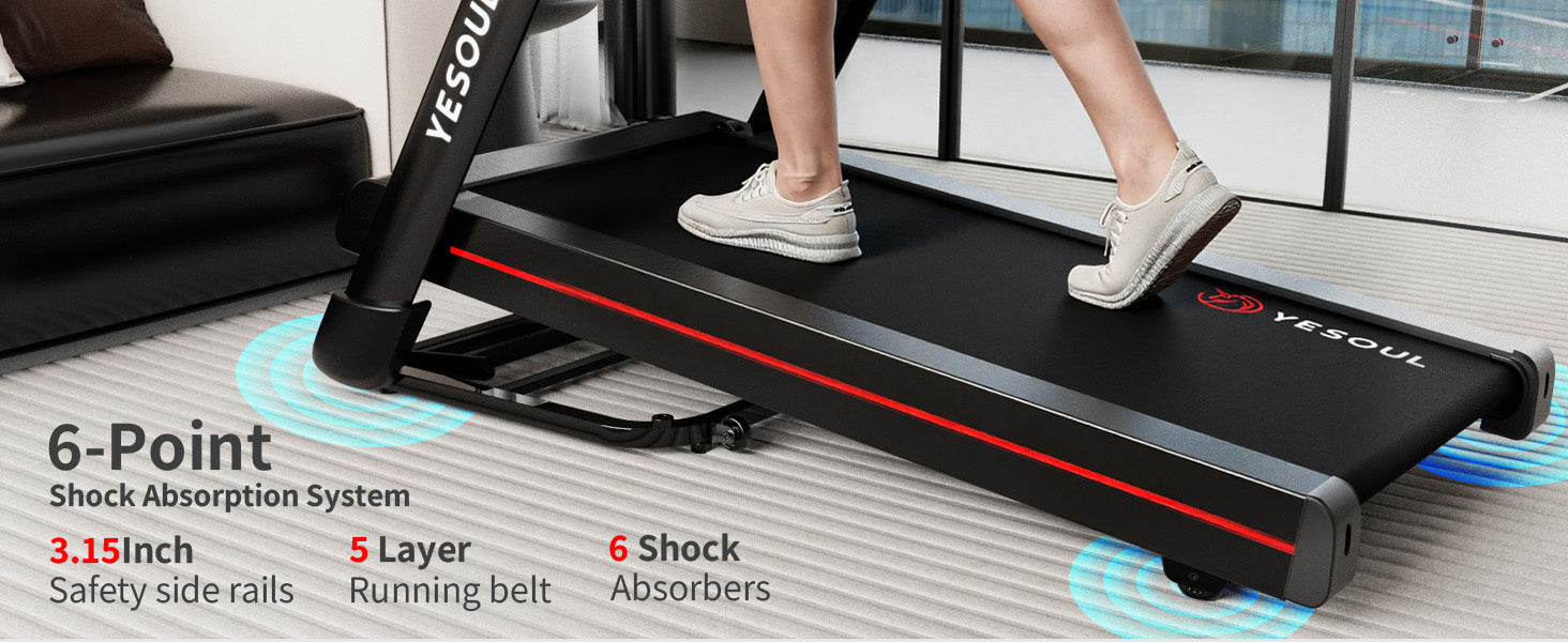 - 【6-Point Shock Absorption System】 Enjoy a gentle, joint-friendly stride with the 6-point shock absorption system, reducing impact on knees and joints so you can focus on your fitness goals comfortably